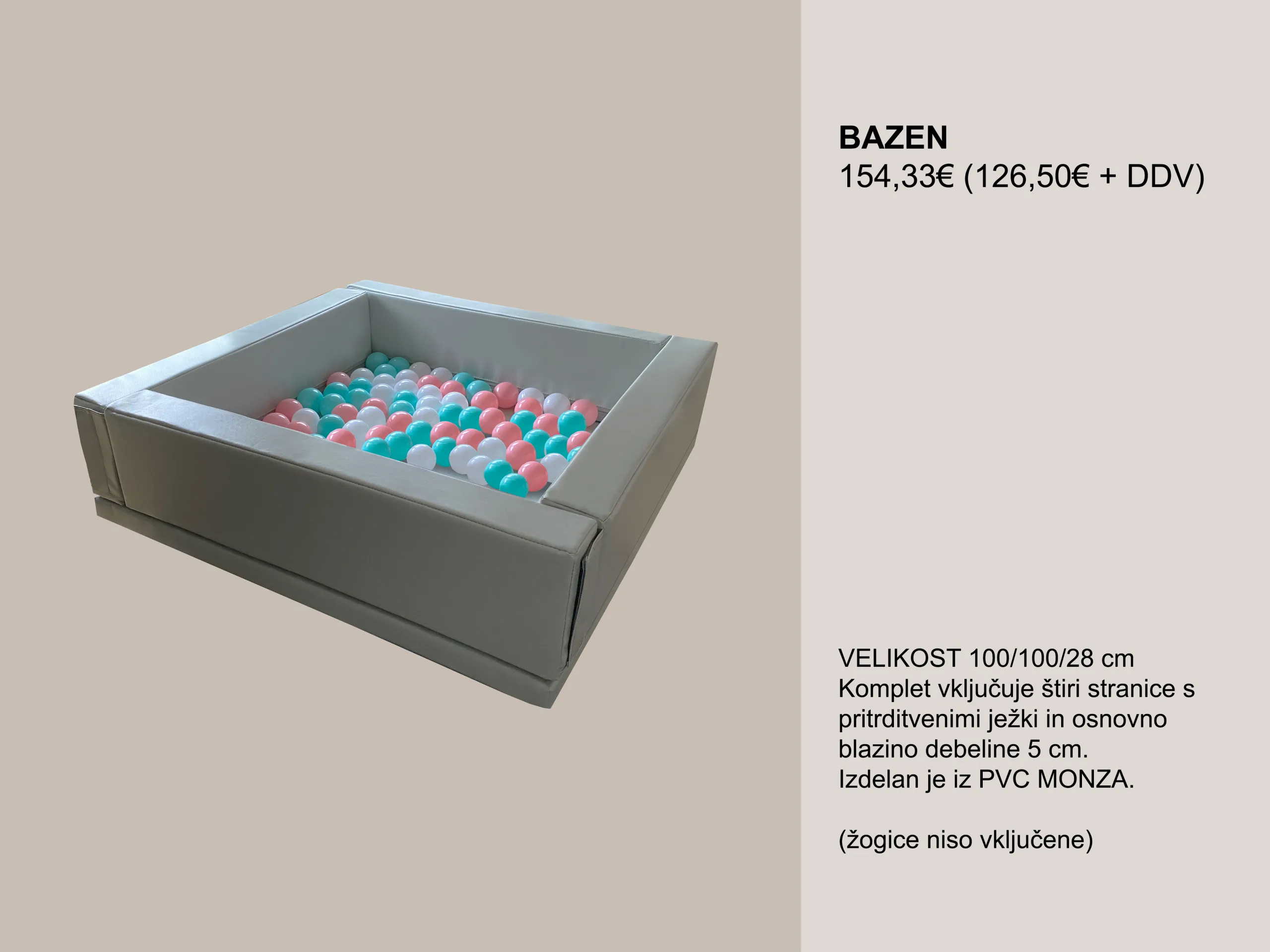 Izdelki so namenjeni za individualno rabo, za otroške vrtce, šole in športne dvorane. Zadnja leta posebno pozornost namenjamo tudi opremljanju senzoričnih sob.